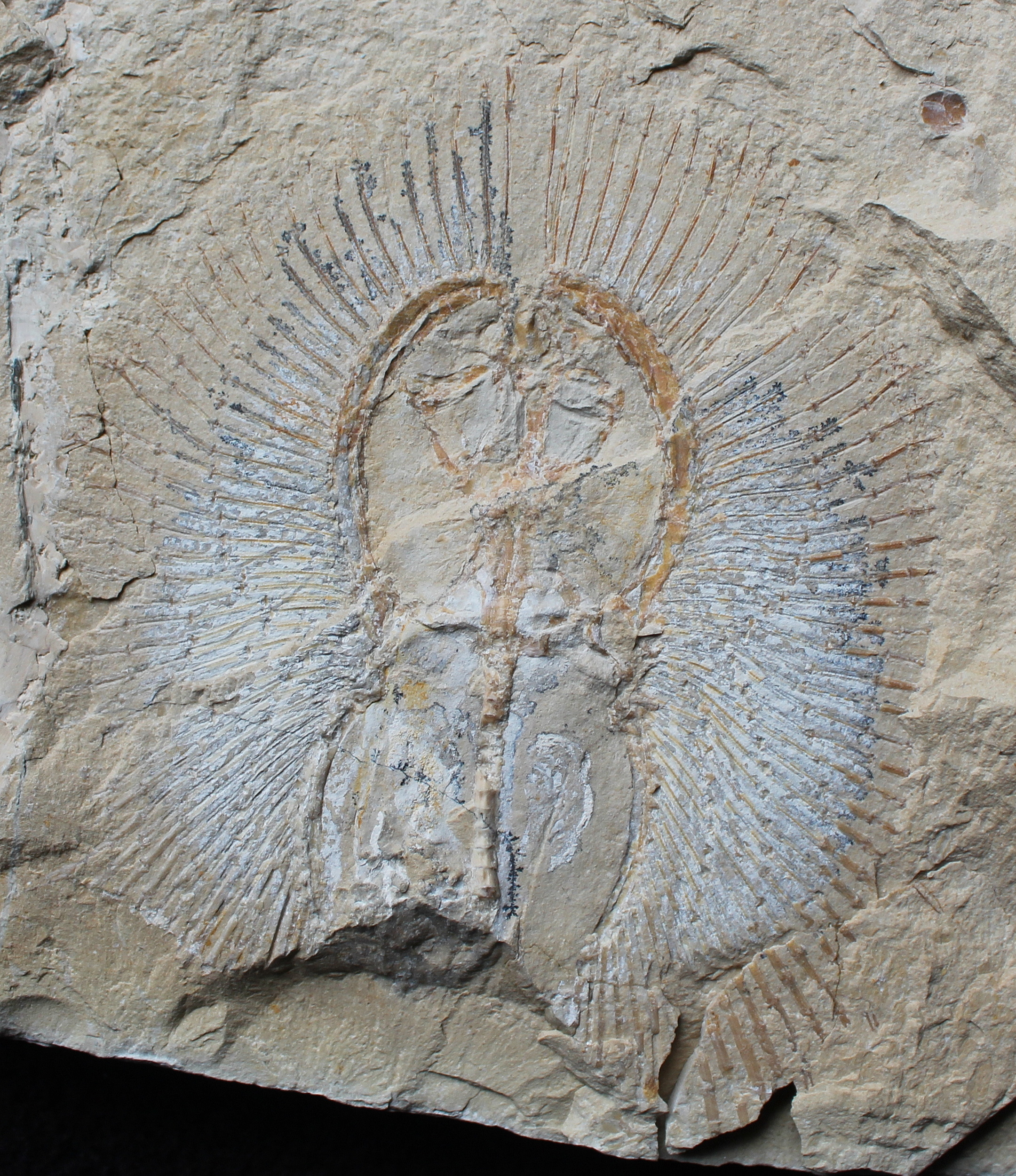Nothing is covered, all the parts not visible are missing from the fossils.